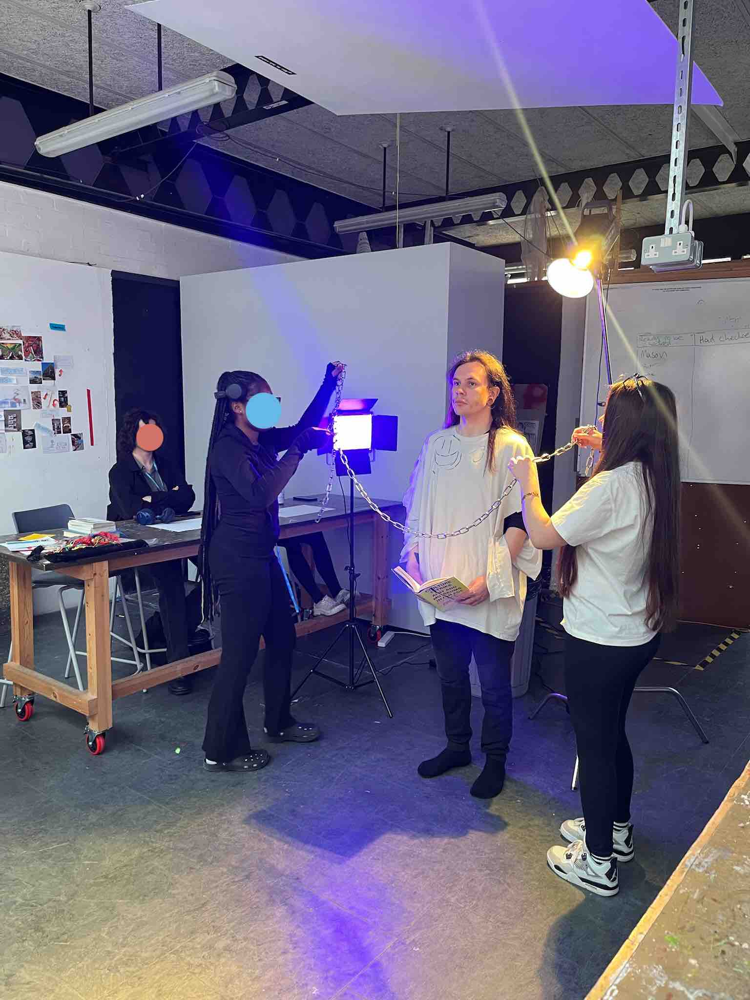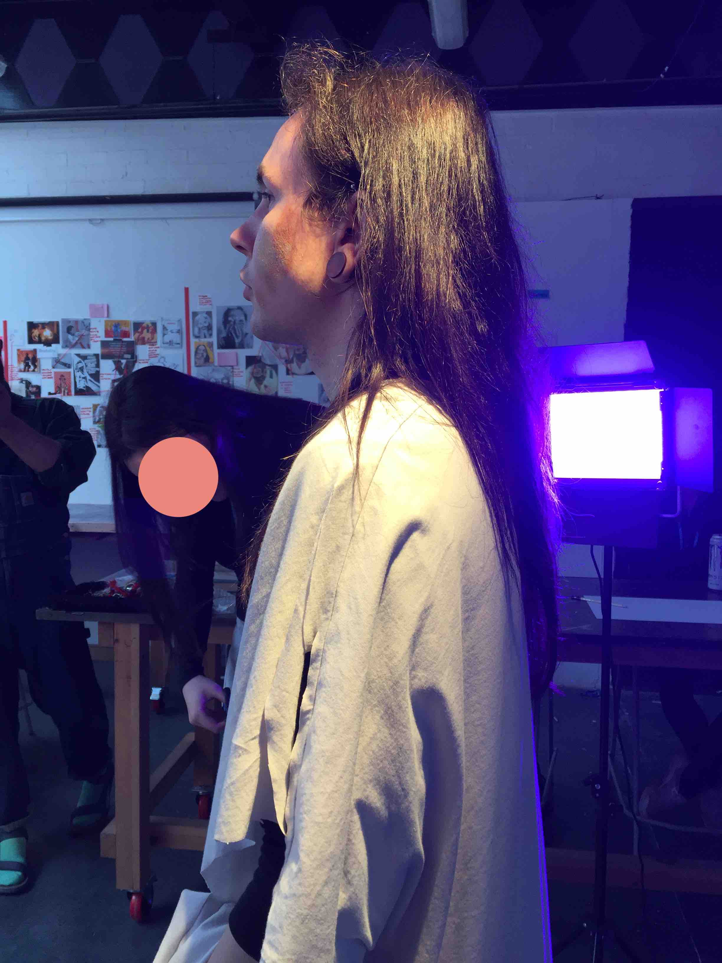 Marina Abramović’s Rhythm 0 (1974) invited the audience to use 72 objects on her body in any way they chose. The performance exposed the extremes of human behaviour and the vulnerability of the artist. There had to be adjustments for a classroom setting so there was a series of rules on the board. The board read 'You do not have the permission to put anything in or around my ears, put anything around my eyes except makeup, cut my black thermal underlay clothing, touch me with your hands'. There were cameras as objects and the photos you see here were taken by the students or my supervising mentor. After the performance, the lesson focused on a discussion about consent in art.